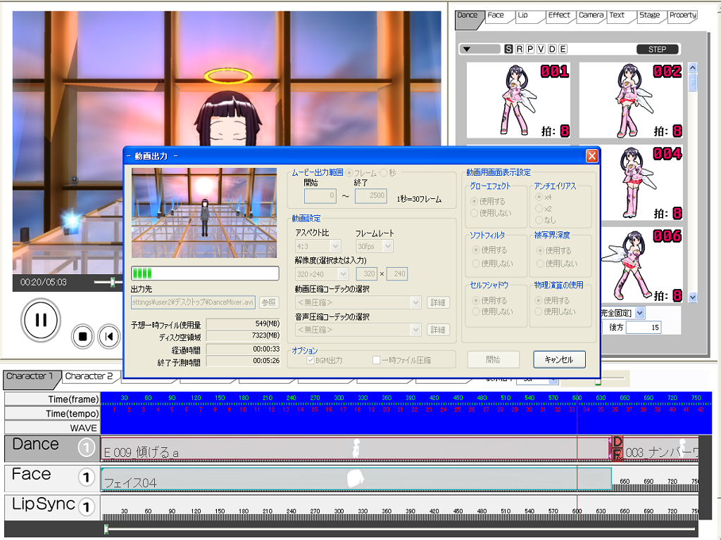 ダンス・エフェクト・カメラなどをタイムライン上に配置して自分だけのステージを完成させていきます。